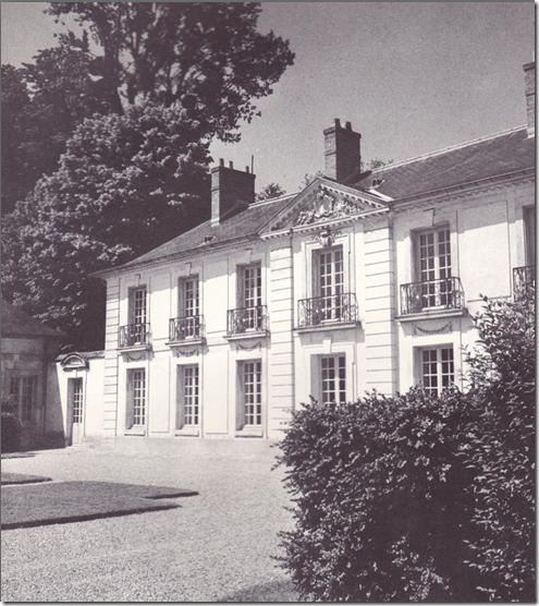 An earlier photograph, taken inside the gates show the shutters and front door stained. Champ Soleil is not as faithful a reproduction as the Ely house. The Ely house has six windows flanking the front entrance, exactly like the Pavillion de la Lanterne. Champ Soleil has only one window flanking the front door, instead of three.
